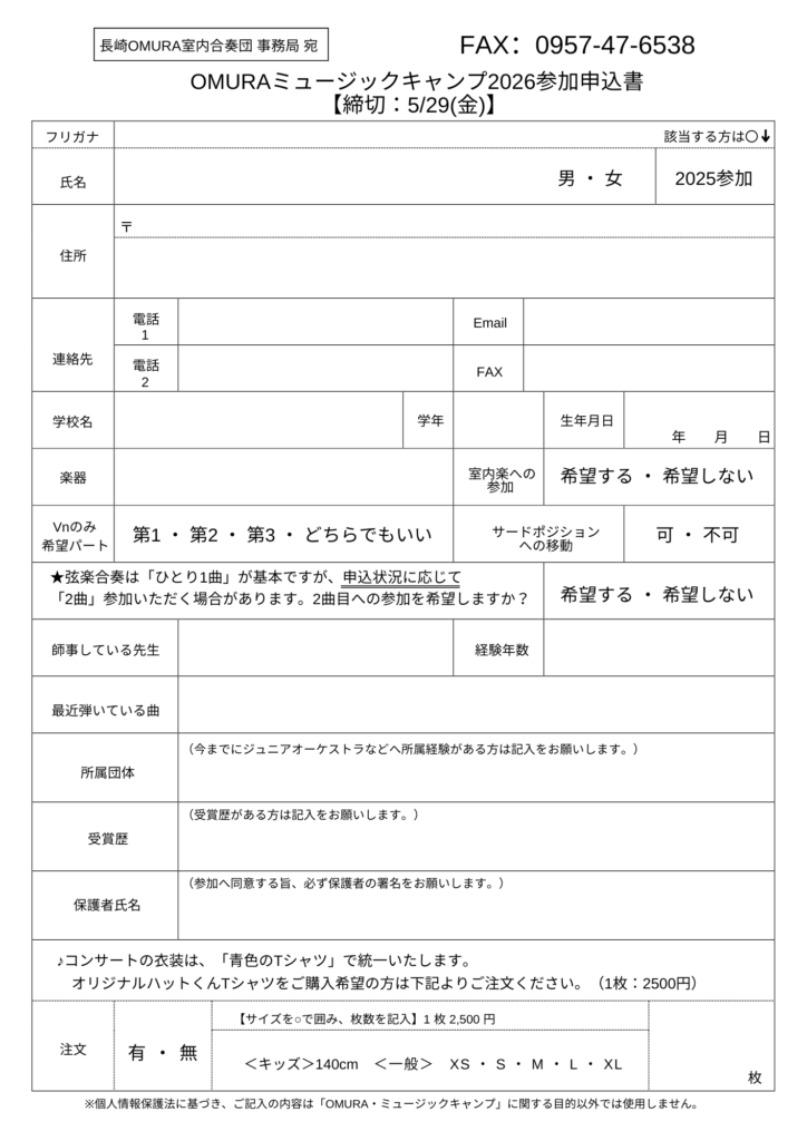 ※リハーサル初日に徴収いたします。 ※参加に関わる交通費・宿泊費は個人でご負担ください。